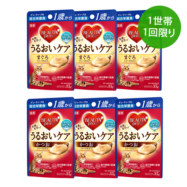 【商品説明】「ビューティープロ キャット パウチ 1歳から」の まぐろ味とかつお味が各3個入ったセットです。