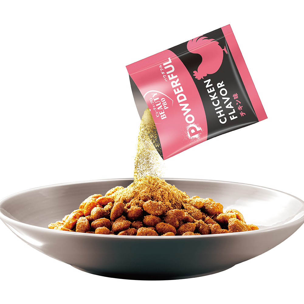 - 【チキン味パウダー】トッピングの王道。食が進む、さっぱりとした味わい。