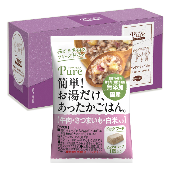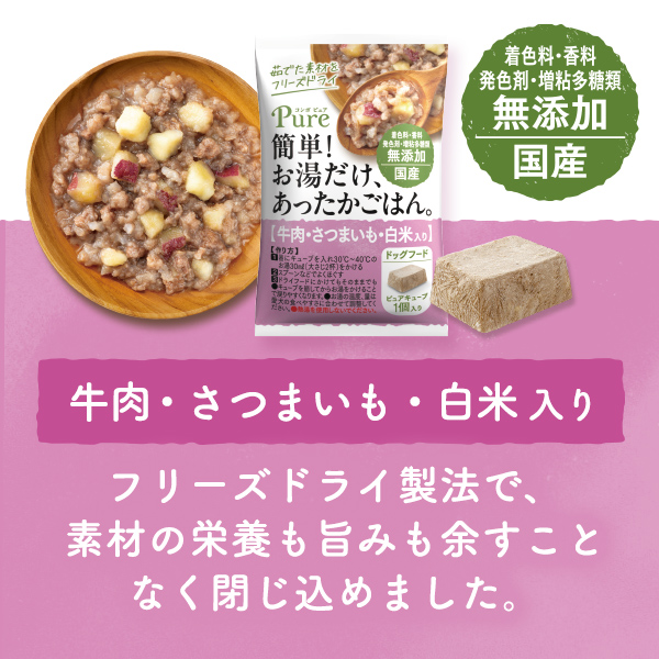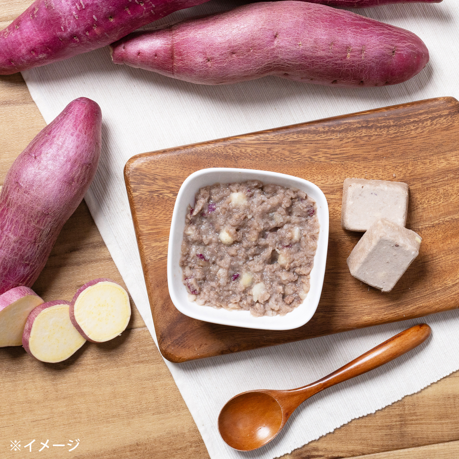 - 愛犬が大好きな「牛肉・さつまいも・白米」を食べやすく調理。