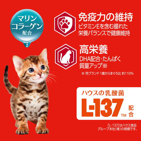 - 離乳期の健やかな成長のために、高たんぱく設計(同ブランド1歳からまぐろ比約110%)。
