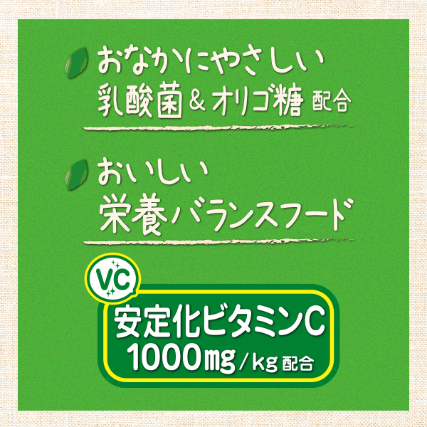- 安定化ビタミンC1000mg/kg配合。