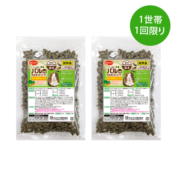 パルoneモルモットフードの試供品2個セット。 数量限定ですので、この機会に是非お試しください。