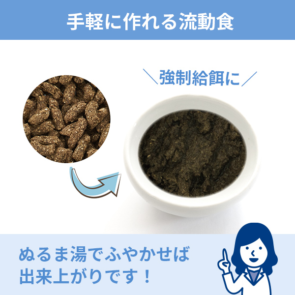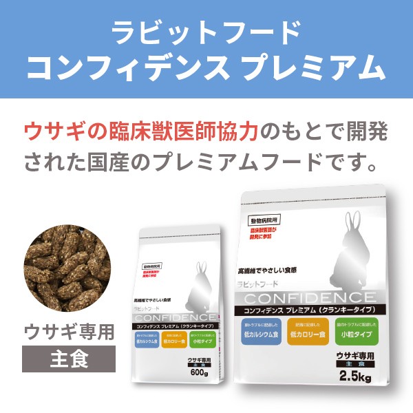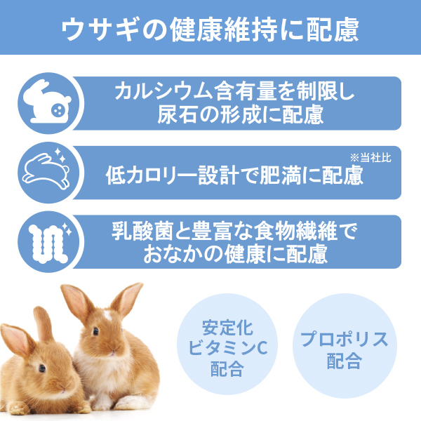 - ウサギの臨床獣医師協力のもとで開発した動物病院用フード。