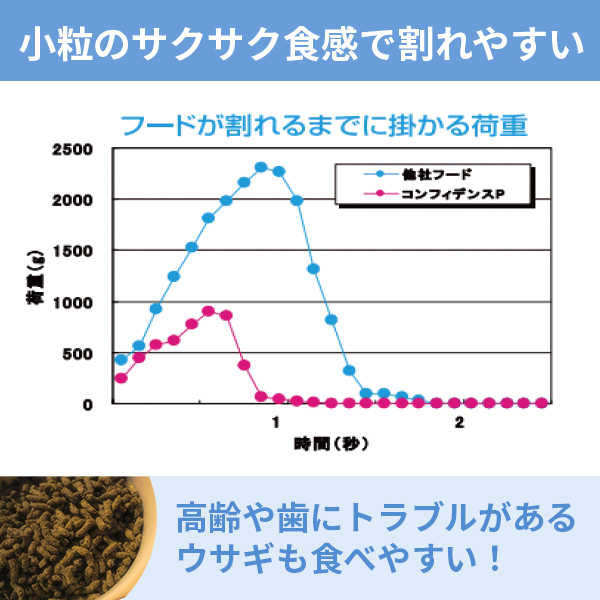 - 歯のトラブルに配慮して、食べやすいクランキータイプに仕上げました。